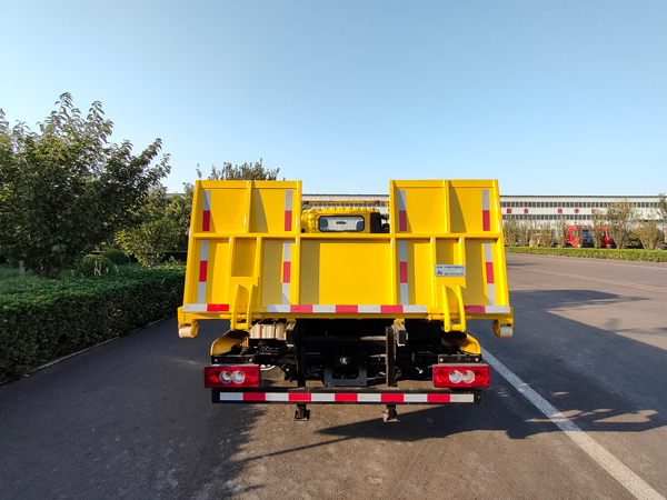 该车用于道路清障,专用装置为平板,液压绞盘;该车型无托举功能;侧防护装置材料为Q235,连接方式为螺栓连接;后下部防护装置同车架焊接连接,材料为Q235,截面尺寸100mm×50mm,离地高度440mm;ABS系统控制器型号/生产企业:YF8/武汉元丰汽车电控系统有限公司,ABS-E/威伯科汽车控制系统(中国)有限公司,ABS-VIE/广州瑞立科密汽车电子股份有限公司,YF9/武汉元丰汽车电控系统有限公司;该车型可选装ETC车载装置.整备质量不含备胎、灭火器,包含停车楔、随车工具.后部安装坡道在行驶时为收起状态,只有在作业时才放下.选装工作装置外观样式. |