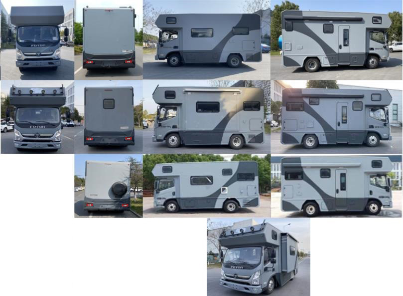 ABS系统型号:ABS-E;生产企业:威伯科汽车控制系统(中国)有限公司.ABS系统型号:ABS-VI.E;生产企业:广州瑞立科密汽车电子股份有限公司.该车选装直接供电式ETC车载装置.仅选用3360mm轴距底盘改装.侧、后防护均由车身结构代替,侧防护离地高290mm/200mm,后防护离地高410mm/335mm.该车配备桌椅,厨具,睡具,卫生设施等旅居生活设施.用于野外露营.车头照明灯具仅在车辆驻车时使用,行驶过程中不可开启.外部选装不同位置的门窗、储物舱门、220V外接市电口、注水口,左侧选装拓展厢体,内部选装不同布局,选装后备胎;选装不带扩展舱. |