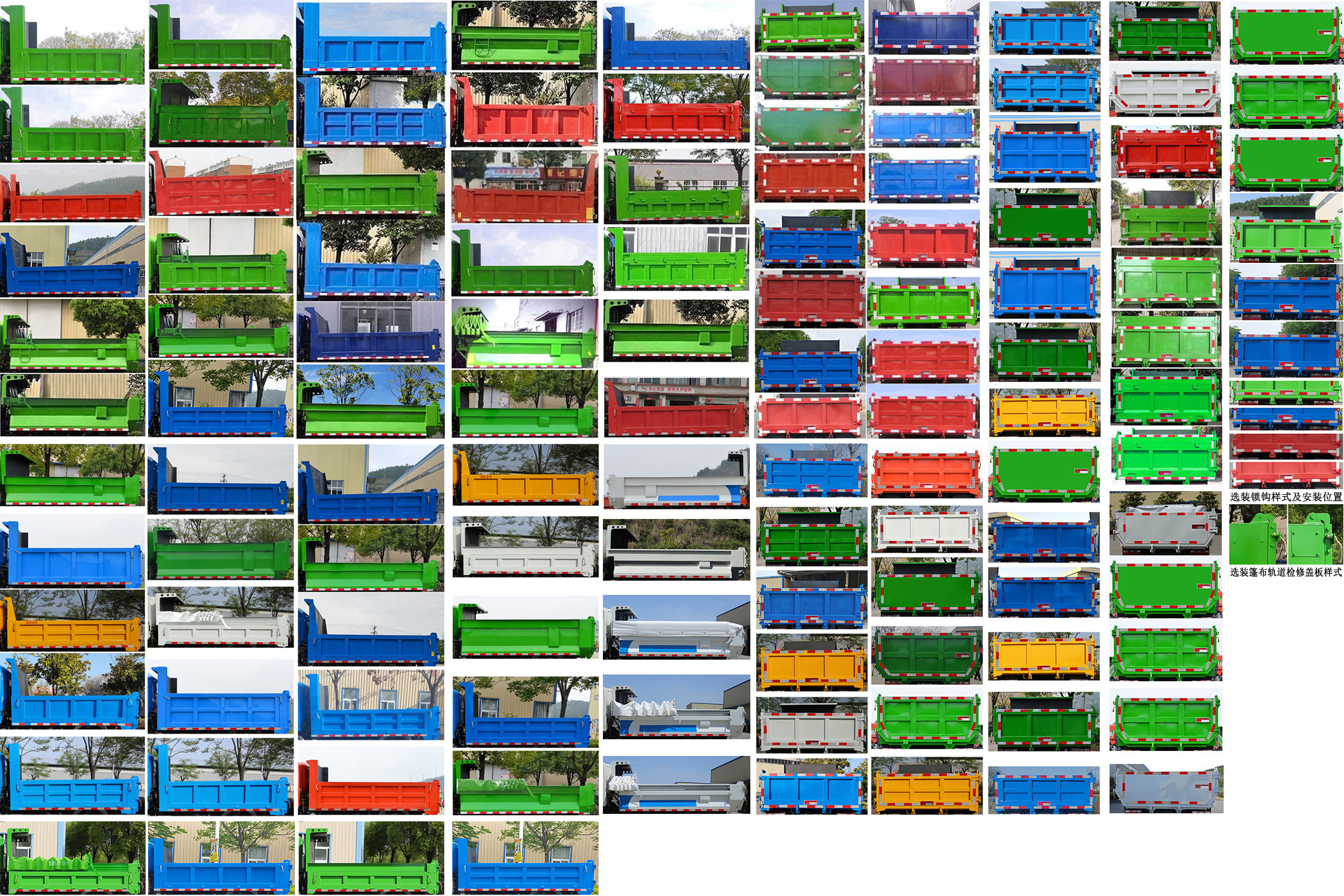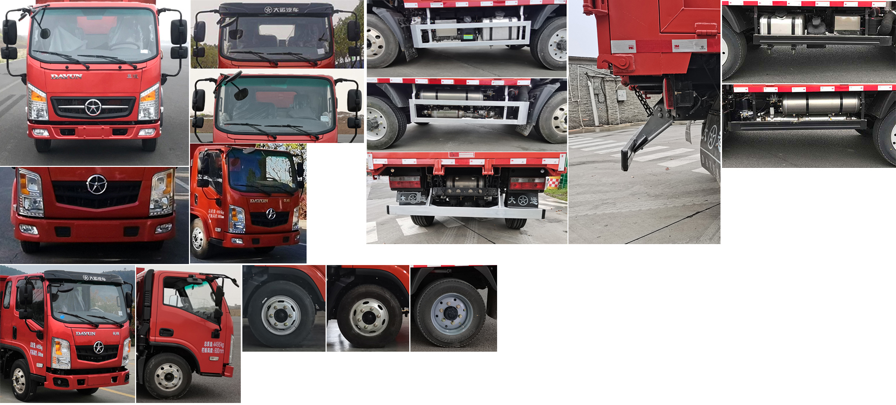 随底盘选装前保险杠,前面板及前部灯具样式,选装遮阳罩,选装轮罩样式,选装电瓶框、尿素罐、燃油滤清器、铝合金储气筒及燃油箱安装位置,选装排气管样式及安装位置,选装排半驾驶室,选装轮圈样式;选装不同货箱样式,选装铝合金防护样式,选装侧防护样式,选装铝合金钢圈,选装铝合金侧防护、铝合金后防护,选装不带备胎;ABS型号:VIE ABS-II,CM4XL-4S/4M;ABS生产企业:浙江万安科技股份有限公司,广州瑞立科密汽车电子股份有限公司;该车型可选装ETC车载装置;发动机净功率值:YN25PLUS1/100,D20TCIF11/88;发动机/油耗值(L/100km)对应关系为:YN25PLUS1/12.8,D20TCIF11/12.0;侧、后防护装置材料为Q235时,侧防护焊接+螺栓连接;后防护焊接+螺栓连接,后防护离地高度为440mm,截面高度和厚度为100mm×50mm;侧、后防护装置材料为铝合金6063-T5时,侧防护焊接+螺栓连接;后防护焊接+螺栓连接,后防护离地高度为450mm,截面高度和厚度为100mm×30mm;自卸方式为后卸式;整车长度尺寸对应关系为:4995=1130+2660+1205,4995=1130+2720+1145,4995=1225+2660+1110,4995=1225+2720+1050.整备质量不包括备胎、灭火器、随车工具,货箱重量:375kg,400kg,420kg,455kg;边板材质为:DC01,Q235B,600L,厚度为:0.8mm,1.5mm,2mm;底板材质为:DC01,Q235B,600L,厚度为:0.8mm,1.5mm,2mm. |
