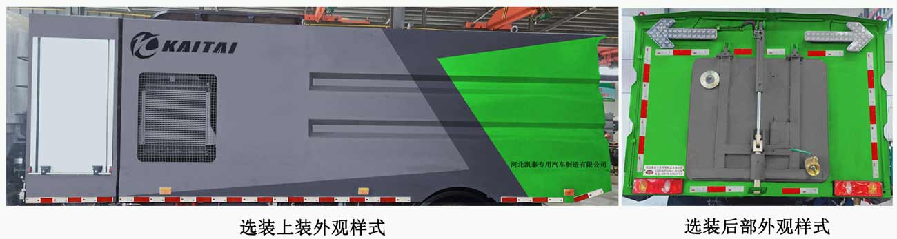 该车仅选用4500轴距;随底盘选装同系列排半驾驶室,驾驶室遮阳板为选装件,可不安装;该车专用装置由垃圾箱,风机和清扫装置等组成,实现清扫作业;装备ABS,生产厂家/型号:东科克诺尔商用车制动系统(十堰)有限公司/3631010-C2000;ABS生产厂家/型号还可为:威伯科汽车控制系统(中国)有限公司/ABS-E 4S/4M;该车侧面防护装置由工作装置代替;后防护装置的材料为Q235,连接方式为螺栓连接,后防护截面尺寸为120×60mm,离地高度为335mm;选装上装外观样式,选装后部外观样式.随底盘选装驾驶室. |