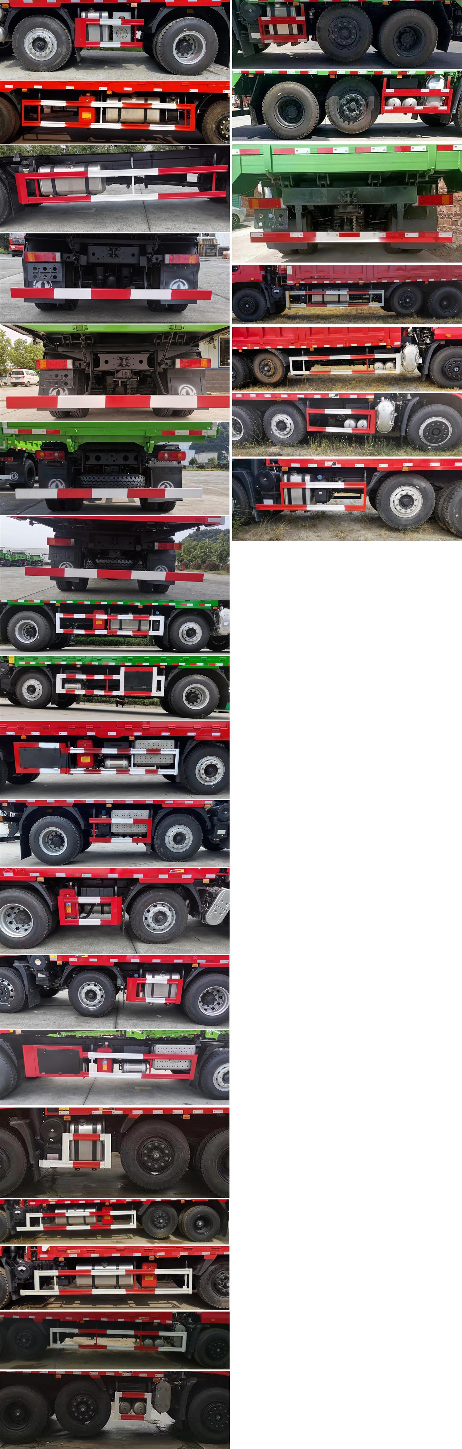 随底盘选装驾驶室前脸局部造型变化,选装遮阳板,选装侧窗装饰板,选装后视镜,选装后处理、储气筒、油箱、备胎、液压油箱的安装位置,选装环保篷布和环保盖,选装货箱结构造型,货箱为后卸式.车辆第二轴选装可提升桥,仅允许空载状态下提升;仅选底盘轴距(mm):2450+1200,2600+1200,2750+1200.ABS生产厂家:东科克诺尔商用车制动系统(十堰)有限公司,浙江万安科技股份有限公司,型号:3631010-C2000,VIE ABS-Ⅱ.该车型安装具有卫星定位功能的行驶记录仪,该车型可选装ETC车载装置.侧、后防护装置材料材质为Q235,连接方式:螺栓连接,后部防护装置断面尺寸(长×宽)120×60mm,离地高度为420mm.发动机/油耗值对应关系:YCK05260-61/36.7,YCS06220-60/36.5,YCS06245-60/36.5,YCS04220-61A/30.0,WP4.6NQ220E62/36.9,WP4.6NQ240E62/36.9,WP7H245E62/36.5,WP7H270E62/36.5. |