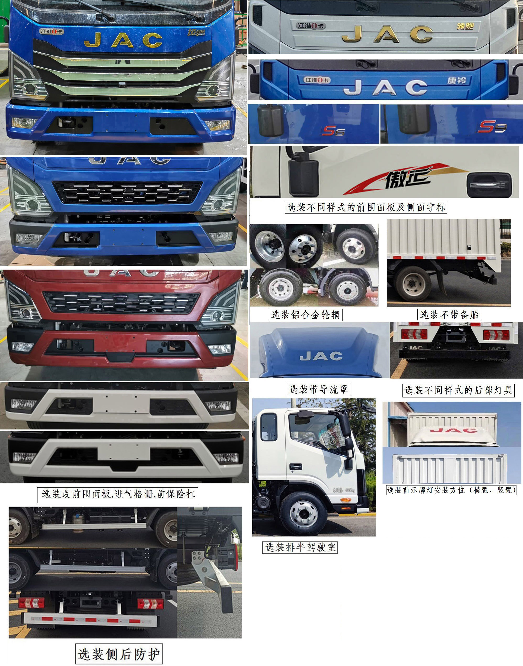 1.侧面及后下部防护装置材料为Q235,连接方式为螺栓连接,后部防护装置断面尺寸(长×宽):100mm×50mm,离地高度为(mm):400/410/420/430/440/450/460/470/480/490;可选装铝合金防护,侧面及后下部防护装置材料为Al-6061,连接方式为螺栓连接,后部防护装置断面尺寸(长×宽):150mm×55mm,离地高度为(mm):400/410/420/430/440/450/460/470/480/490;2.发动机CA4DB2-16E68对应的油耗申报值 (L/100km)为11.4;3.ABS型号/厂家为:CM4XL-4S/4M/广州瑞立科密汽车电子股份有限公司,VIE ABS-Ⅱ/浙江万安科技股份有限公司;4.选装改前围面板,进气格栅,前保险杠,可选装不同样式的后部灯具,选装带导流罩,选装不带备胎,选装铝合金轮辋,选装排半驾驶室;5.选装不同样式和材质的货箱,货箱重量为(kg):610,630,650;侧板材质为钢(Q235A/410LA)厚度为:1.5mm,底板材质为钢(Q235A/410LA)厚度为:1.5mm/3.0mm,该车型整备质量包含备胎,灭火器,随车工具;6.选装不同样式的前围面板及侧面字标;7.该车型可选装ETC车载装置,车厢顶部封闭不可开启,可选装前示廓灯安装方位(横置、竖置);8.选装后下部防护装置材料为Q235,连接方式为螺栓连接,后部防护装置断面尺寸(长×宽):120mm×60mm,离地高度(mm)为390/400/410/420/430/440/450/460/470/480/490;9.可选装液压尾板,尾板收起状态的水平长度为280mm,当选装液压尾板时后部防护装置材料为510L,后部防护装置的断面尺寸(圆形)为:Φ115mm,离地高度为455/480mm,尾板质量为350Kg. |