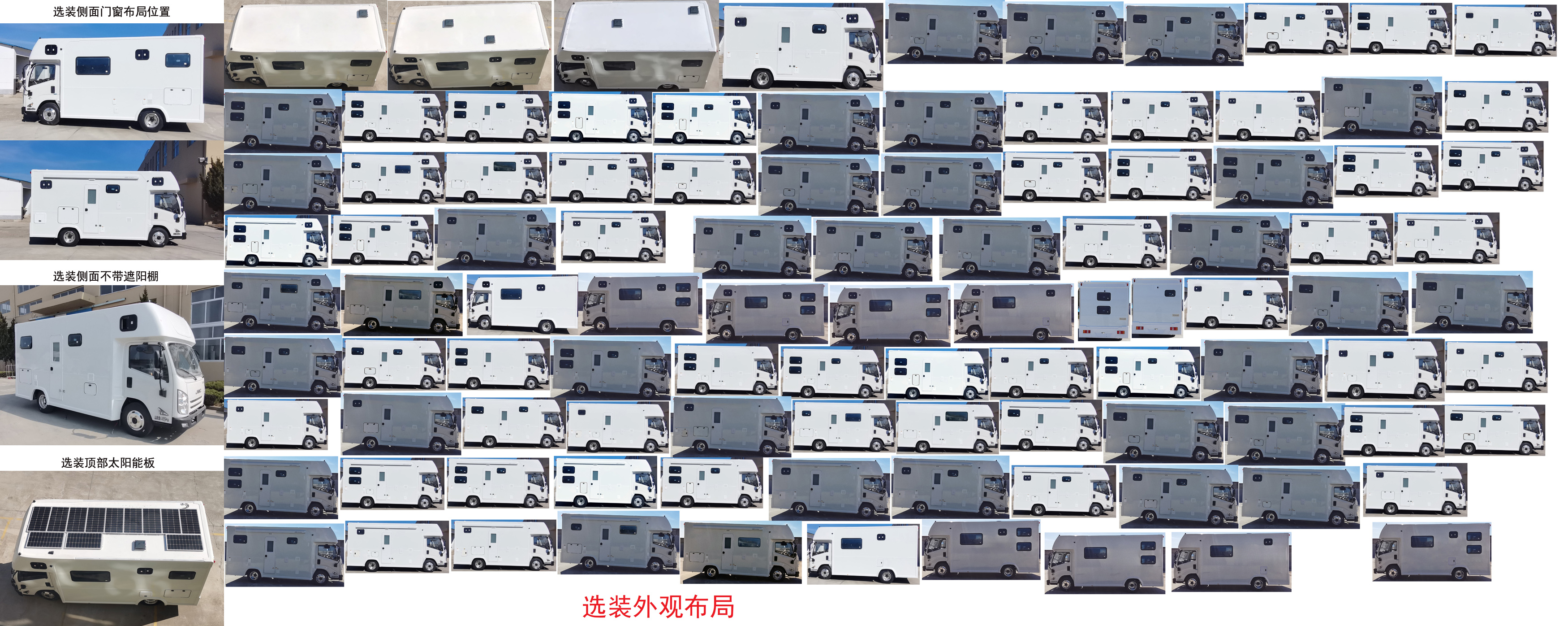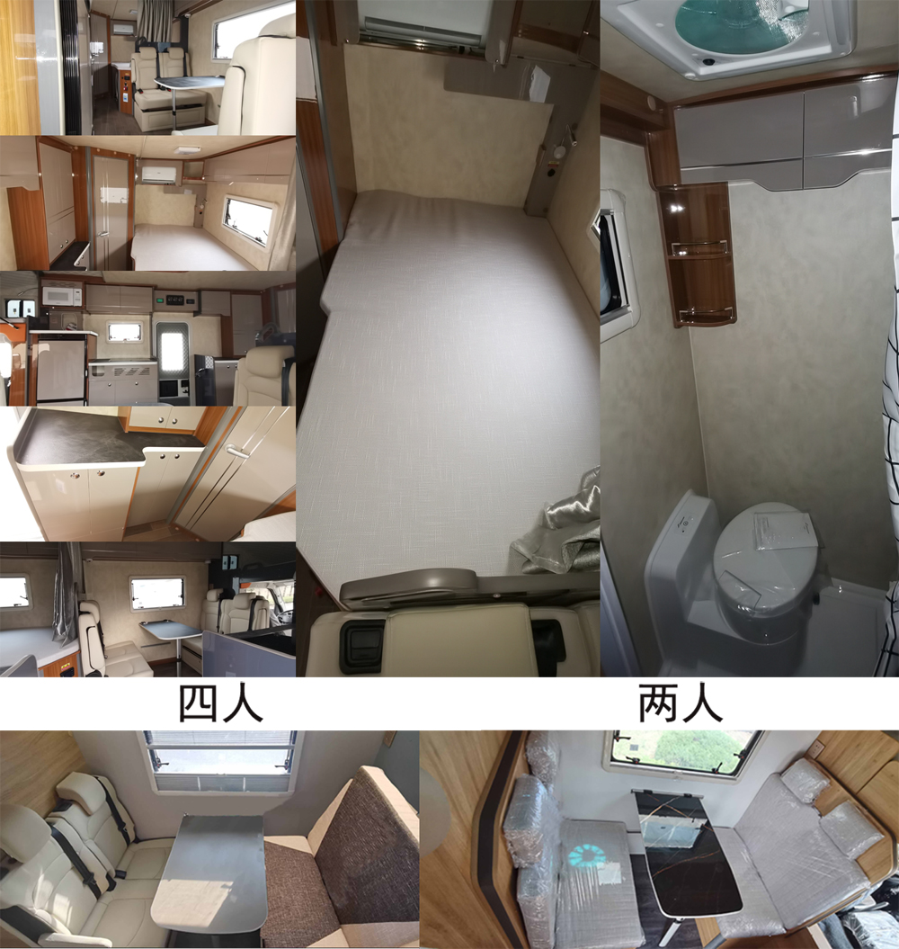 备注 | 专用装置及功能:车内设有桌椅,睡具,炊具,卫生设施及照明和空气调节等设施,用于旅行宿营;选装内部装置布局,选装外观布局;顶部选装太阳能板.侧面选装无遮阳棚时宽度为:2280mm;右侧遮阳棚下方的工作照明灯,仅在驻车状态下使用;该车左、右侧防护和后防护均为裙边结构,材料为Q235,侧面防护离地高度320mm,后防护装置离地高度370mm;液刹ABS系统型号:APG3550500A,ABS系统生产厂家:浙江亚太机电股份有限公司;液刹ABS系统型号:WBTL ESC610,ABS系统生产厂家:芜湖伯特利电子控制系统有限公司;气刹ABS系统型号:VIE ABS-II,ABS系统生产厂家:浙江万安科技股份有限公司;该车型可选装直接供电式ETC车载装置. |