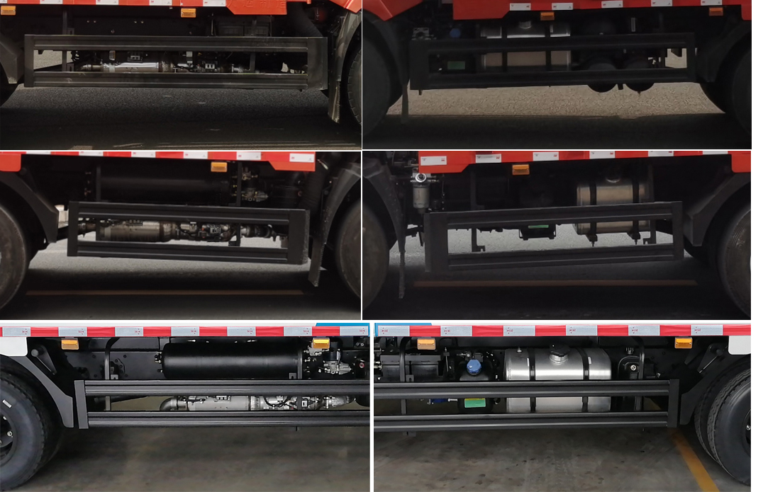 随底盘选装前保险杠,前面板及前部灯具样式,选装遮阳罩,选装单排驾驶室,选装轮圈样式,选装电瓶框、尿素罐和储气筒样式及安装位置,选装燃油箱样式,选装不同货箱样式,选装液压油箱安装位置,选装后部横梁样式,选装不带备胎;ABS型号:VIE ABS-II,CM4XL-4S/4M;ABS生产企业:浙江万安科技股份有限公司,广州瑞立科密汽车电子股份有限公司;该车型可选装ETC车载装置;发动机净功率值:YN25PLUS1/100;发动机/油耗值(L/100km)对应关系为:YN25PLUS1/21.2;侧、后防护装置材料均为Q235,侧防护焊接+螺栓连接;后防护焊接+螺栓连接,后防护离地高度为440mm,410mm,370mm,330mm,300mm,截面高度和厚度为100mm×50mm;自卸方式为后卸式;整车长度尺寸对应关系为:5350=1130+2860+1360,5400=1130+2860+1410,5520=1130+3000+1390,5670=1130+3200+1340,5840=1130+3200+1510,5900=1130+3300+1470,5995=1130+3300+1565,6050=1130+3300+1620,6100=1130+3300+1670,5350=1225+2860+1265,5490=1225+2860+1405,5600=1225+3000+1375,5700=1225+3000+1475,5780=1225+3200+1355,5840=1225+3200+1415,5995=1225+3300+1470,6050=1225+3300+1525,6100=1225+3300+1575,5780=1130+3200+1450,5100=1130+2860+1110,5150=1130+2860+1160,5200=1130+2860+1210. |