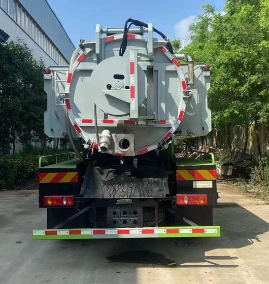 祥农达牌东风华神F5国六11.6方清洗吸污车的外观时尚美观,设计科学,外形尺寸为7530×2550×3430(mm),额定上户吨位为7490,7555(kg),总质量为16000(kg),整车上装罐体采用优质钢板一次冲压成型,密封性好,吸污罐体可举升,后盖可以液压打开,排污更彻底,采用进口的高压清洗泵,疏通管道更方便,更彻底,视污窗,洗手装置,高压清洗管,吸污管等配置齐全。