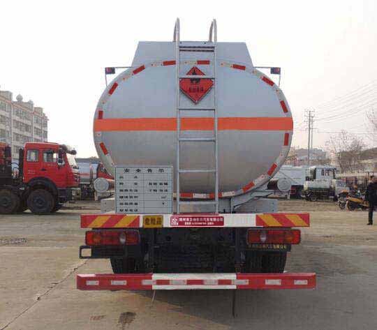 罐体有效容积:23.4立方米,危险货物运输车辆类型为FL型,介质:汽油,类项号:3,整车长/轴距/前悬/后悬/罐体尺寸(长×长轴×短轴)对应关系分别为(mm): 10200/1800+5000/1430/1970/7400×2450×1650; 10200/1800+4100/1430/2870/7350×2400×1700; 10800/1800+5000/1430/2570/8100×2400×1550;侧、后防护装置材料材质:Q235B,侧、后防护均用螺栓连接,后部防护装置断面尺寸(宽×高)80×150(mm),后部防护离地高度:500mm;后轴采用空气悬架;随底盘选装驾驶室,选装挡泥板,选装箱门样式;安装具有卫星定位功能的行驶记录仪,排气管前置,安装前轮盘式制动器和限速装置,限速80km/h;ABS生产厂家:东科克诺尔商用车制动系统(十堰)有限公司;型号:3631010-C2000;发动机型号及油耗值(L/100km)为:ISD210 50(33.7),ISD245 50(33.6),ISD270 50(33.6),ISB210 50(33.7),ISB220 50(34.2),ISD285 50(33.5). |