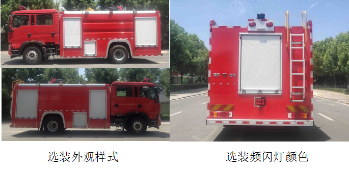 罐体总容积为7.900立方米,水罐容积:5.900立方米,水罐尺寸:1780×2450×1400mm,泡沫液罐容积:2.000立方米,泡沫液罐尺寸:605×2450×1400mm。整体式侧防护结构,后防护装置材料:Q235A,截面尺寸(宽×高):80×120mm,与车辆连接方式:螺栓连接,后防护离地高度:440mm,ABS生产企业为威伯科(上海)管理有限公司,型号为4460046300。主要专用装置有消防泵、消防炮。随底盘选装 EBS,EBS 系统控制器生产企业/型号为采埃孚商用车系统(青岛)有限公司/EBS3。选装外观样式和频闪灯颜色。 |