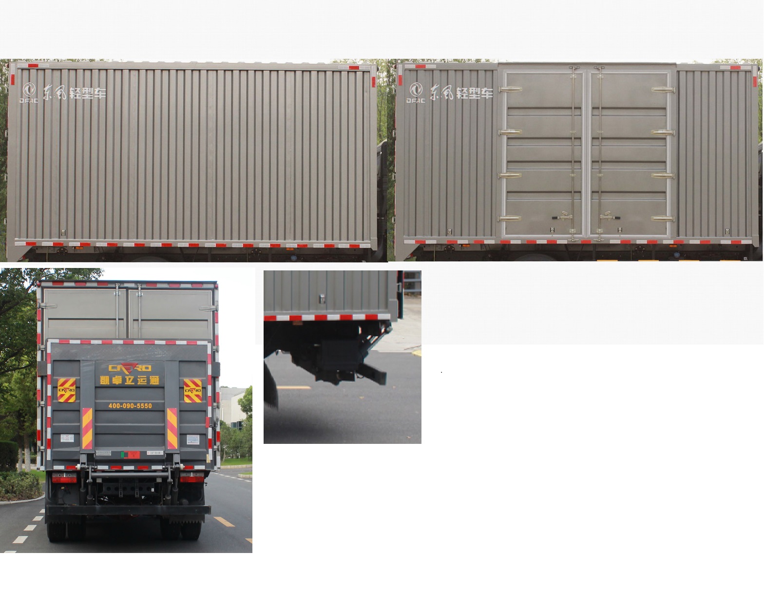 货厢顶部封闭不可开启.选装导流罩和侧开门.侧门可为单开门,双开门或不开门.随底盘选装前面罩,前保险杠,前组合灯具及前雾灯,随底盘选装油箱.侧面及后下部防护装置材料为Q235,后下部防护装置断面尺寸(mm):120×60,离地高度:490mm,与车架采用螺栓连接.D4.0NS6B195和YCS04200-61发动机时油耗均为26.3(L/100km).ABS厂家及型号:襄阳东风隆诚机械有限责任公司/ABS/ASR-24V-4S/4M.后防护上安装的倒车雷达为选装件,安装具有卫星定位功能的行驶记录仪.该车型可选装ETC车载装置.选装液压尾板,收起状态的水平长度为290mm,液压尾板质量为450kg,后防护与液压尾板连动,后防护与液压尾板采用焊接连接.后下部防护装置断面尺寸(mm):120×60,离地高度:460mm. |