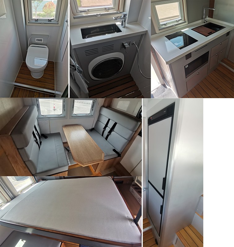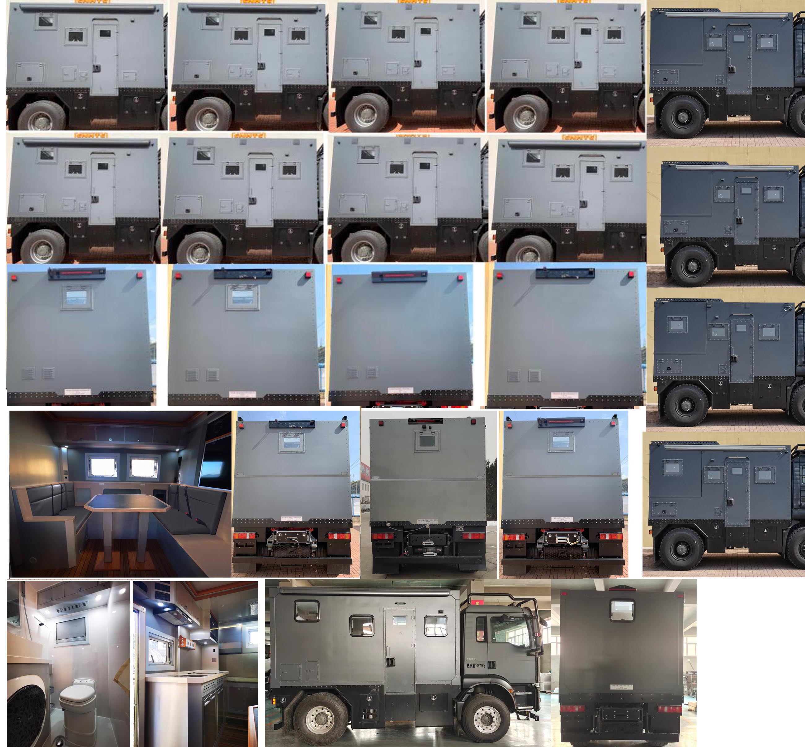 侧防护为裙边结构,材质为304不锈钢材料;后防护材质为Q235,断面尺寸(宽×高)mm:80×120,离地高度:320mm,连接方式为螺栓连接。专用装置为桌椅,睡具,卫生设施等旅居生活设施,用于人员旅居。安装EBS,EBS系统控制器生产企业为采埃孚商用车系统(青岛)有限公司,EBS系统控制器型号为EBS3;发动机净功率值:254kW(MC07H.35-60),251kW(MC07H.35-61),294kW(MC11.40-61),该车型可选装直接供电式ETC车载装置;其他说明:外形尺寸长(mm)与轴距(mm),前后悬(mm)和接近角/离去角(°)参数对应关系为:5995=1450+3600+945(28/17),5995=1492+3600+903(33/18).仅选用轴距3600mm底盘.后悬架为空气悬架。选装内部布局结构,选装座椅结构,选装外部结构。选装侧面及后部窗户位置,选装侧面遮阳棚。选装后部绞盘结构。选装侧面及后部窗户样式。 |