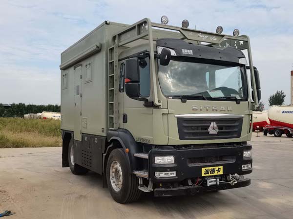 麒强牌汕德卡国六旅居车在外观时尚霸气造型圆润流畅,可有效降低风阻系数,整车外形尺寸为5995×2550×3800,3700,3600(mm),房厢采用玻璃钢复合车身结构及阻燃保温材料,做工精细;房厢内部配置齐全,床,洗手间,厨房,冰箱,,储物仓,暖气设备,灭火器等等。