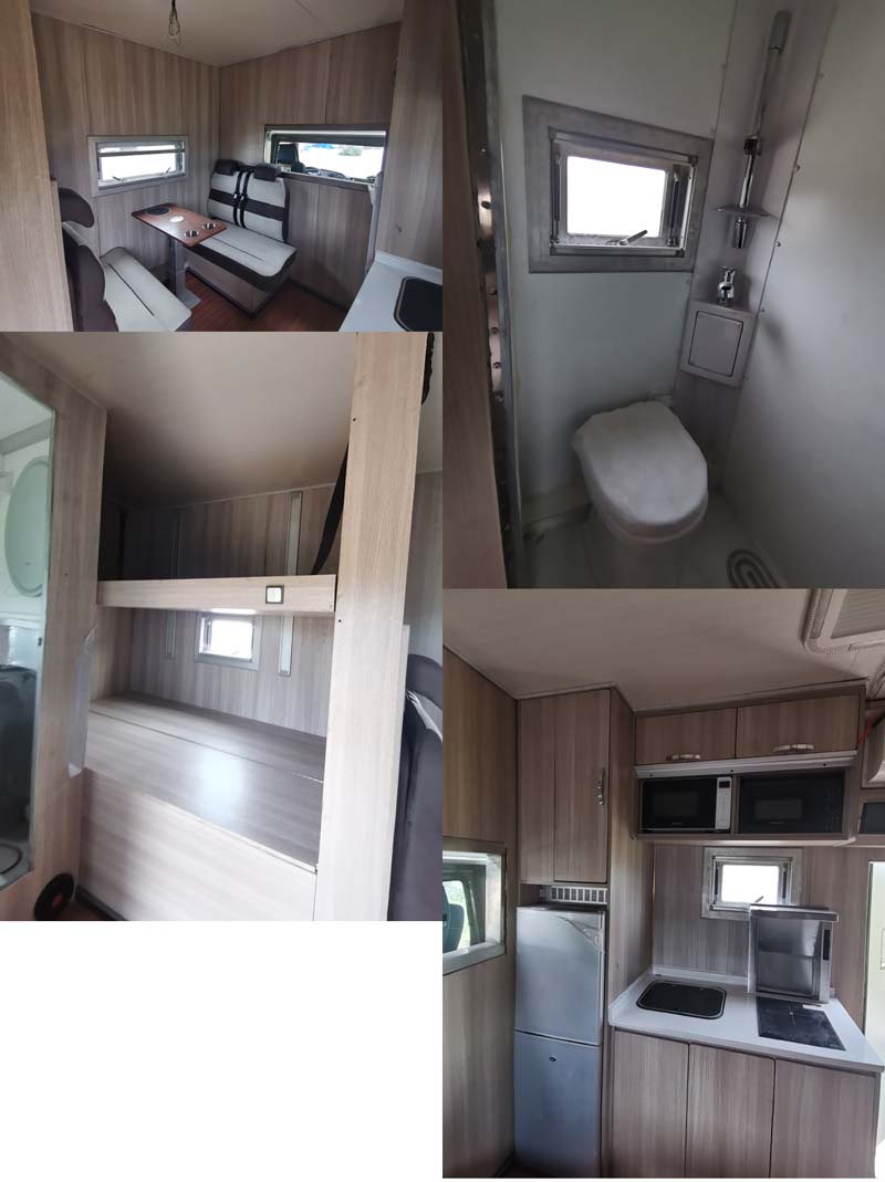该车主要用于外出旅游居住,方便出行;本车型装备桌椅,睡具,卫生设施等设施,车辆顶部可选装车顶行李架、顶置空调、太阳能电池板,ABS系统控制器生产企业/型号为采埃孚商用车系统(青岛)有限公司/4460046300;侧防护装置由车身裙边结构代替,后防护装置材料为:Q235B,后防护装置与车架连接方式为焊接,后防护装置截面尺寸为:160×80mm,离地高度390mm.该车型可选装ETC车载装置.仅选用3600mm轴距,仅采用空气悬架样式.车头顶部灯具仅限人员在野外非道路状况下工作和生活照明使用.选装后部样式. |