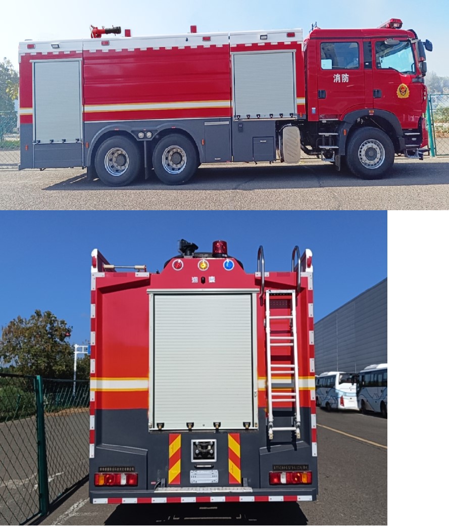 水罐总容积为 11.600 立方米,水罐尺寸:3600×2490×1350mm.整体式侧防护结构,后防护装置材料:Q235A,截面尺寸:80×120mm,与车辆连接方式 :螺栓连接,后防护离地高度:445mm,ABS 生产企业为威伯科(上海)管理有限公司,型号为 4460046300.主要专用装置有消防泵、消防炮.选装充电装置位置、选装后部造型,选装右侧器材箱踏板及卷帘门样式. |