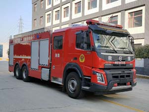 罐体总容积为14.600立方米,水罐容积:12.500立方米,水罐尺寸:3480×2430×1550mm,泡沫液罐容积:2.100立方米,泡沫液罐尺寸:580×2430×1550mm.整体式侧后防护结构,后防护离地高度:458mm.EBS生产企业为KNORR,型号为EBS7 ECU.主要专用装置有消防泵,消防炮. |