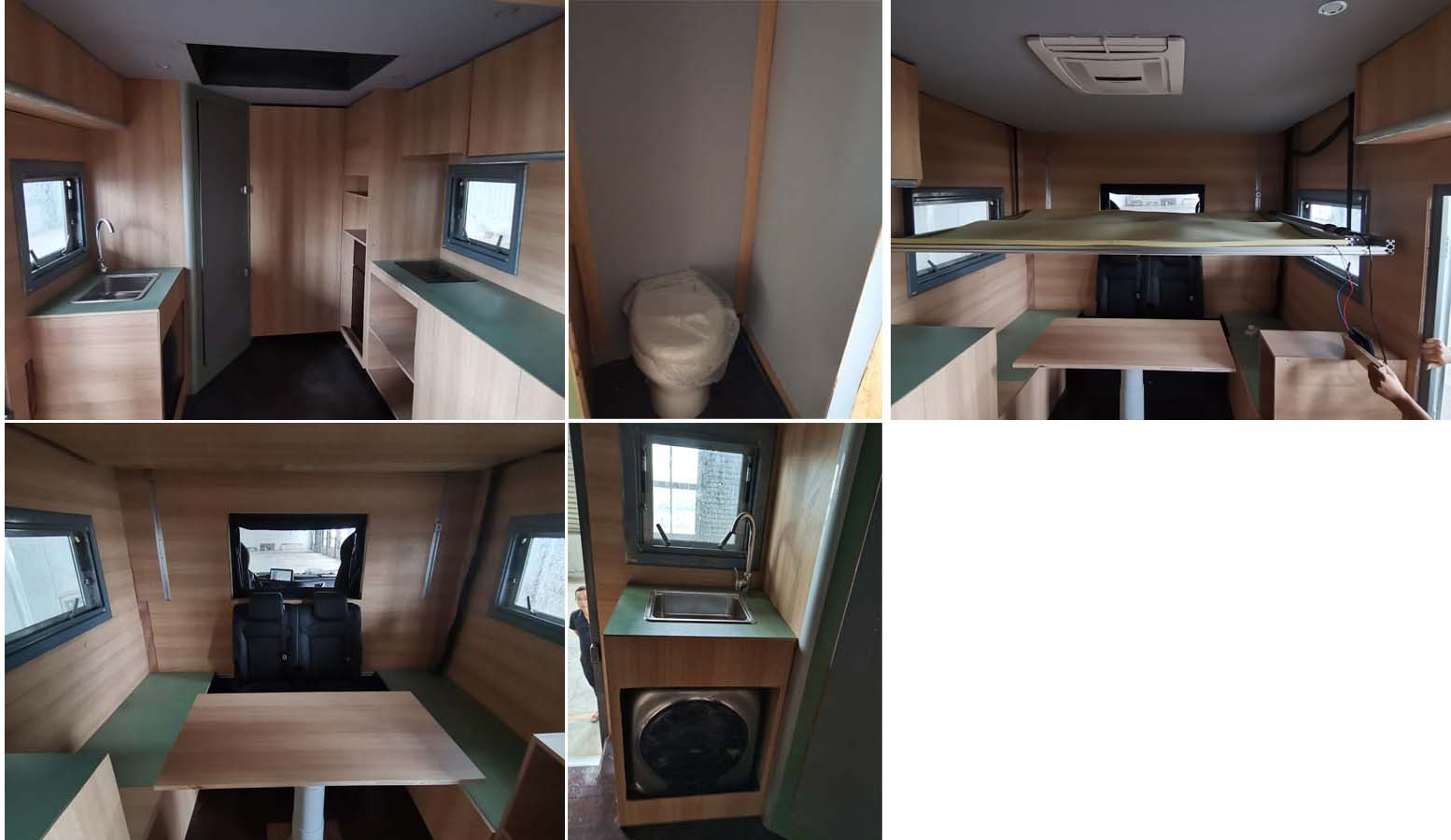 车辆内部配备桌椅、升降床、卫生间、空调等旅居生活设施,用于旅居宿营;车头顶部灯具仅限人员在野外非道路状况下工作和生活照明使用;EBS型号:EBS 5;EBS生产企业:东科克诺尔商用车制动系统(十堰)有限公司;仅采用3650轴距(mm);侧防护装置由车身裙边结构代替,后防护装置材料为:Q235B,后防护装置与车架连接方式为螺栓连接,后防护装置截面尺寸为:120×60mm,离地高度495mm;选装ETC车载装置. |