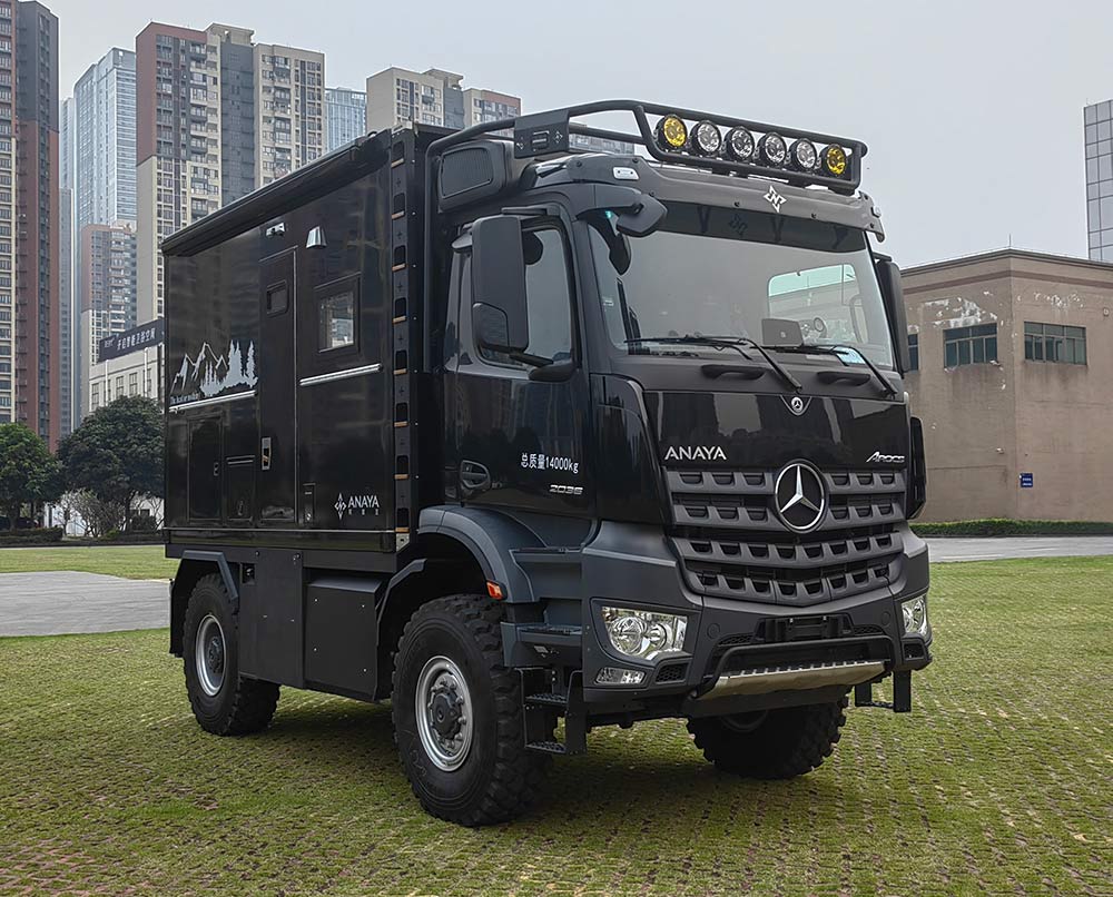 阿娜蕥牌奔驰国六旅居车采用底盘型号为的底盘,排放标准为,轮胎规格为,低能耗,高功率,满足现行排放标准。