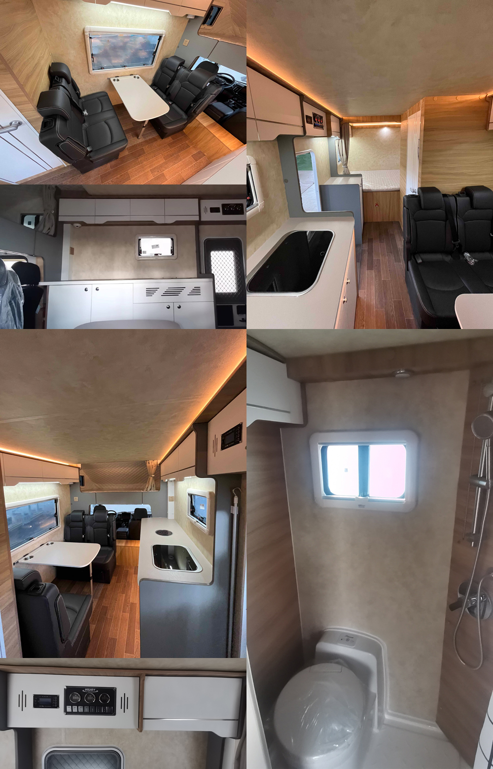 威士捷牌福田领航S1国六旅居车在外观时尚霸气造型圆润流畅,可有效降低风阻系数,整车外形尺寸为5990×2145,2195×2760(mm),房厢采用玻璃钢复合车身结构及阻燃保温材料,做工精细;房厢内部配置齐全,床,洗手间,厨房,冰箱,,储物仓,暖气设备,灭火器等等。