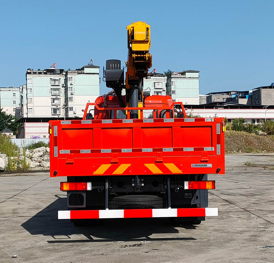 吊机型号:SQS200,吊机质量(kg):3820,吊机最大起升载荷(kg):8000;整备质量/额定载质量/载质量利用系数对应关系为:12090/5715(对应驾驶室准乘3人)5780(对应驾驶室准乘2人)/1.17,11550/6255(对应驾驶室准乘3人)6320(对应驾驶室准乘2人)/1.32, 11000/6805(对应驾驶室准乘3人)6870(对应驾驶室准乘2人)/1.50;B6.2NS6B210发动机对应油耗值为26.4L/100km;B6.2NS6B230发动机对应油耗值为26.4L/100km,B6.2NS6B245发动机对应油耗值为26.4L/100km;侧防护装置所用材料:铝合金,侧防护装置和副车架采用螺栓连接,后防护装置所用材料:Q235,后防护装置与车架采用螺栓链接;后部防护装置的断面尺寸120mm×60mm,后防护装置离地高度后防护装置离地高度460mm;ABS型号:3631010-C2000,生产厂家:东科克诺尔商用车制动系统(十堰)有限公司;安装有具有卫星定位功能的行驶记录仪;该车型可选装直接供电式ETC车载装置. |