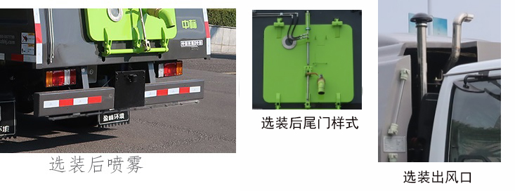 该车装有箱体和清扫装置,对路面进行清扫作业;侧面防护装置由工作装置替代;后防护装置的材料材质为Q355B,连接方式为螺栓连接;后部防护装置的断面尺寸为180×65mm,离地高度为460mm;该车可选装后喷雾,后尾门样式,出风口;随底盘选装制动系统:装液压制动系统时,ABS及其控制器型号/生产企业对应关系为:APG3550500A/浙江亚太机电股份有限公司,CM4YL/广州瑞立科密汽车电子股份有限公司;装气压制动系统时,ABS及其控制器型号/生产企业对应关系为:CM4XL-4S/4M/广州瑞立科密汽车电子股份有限公司. |