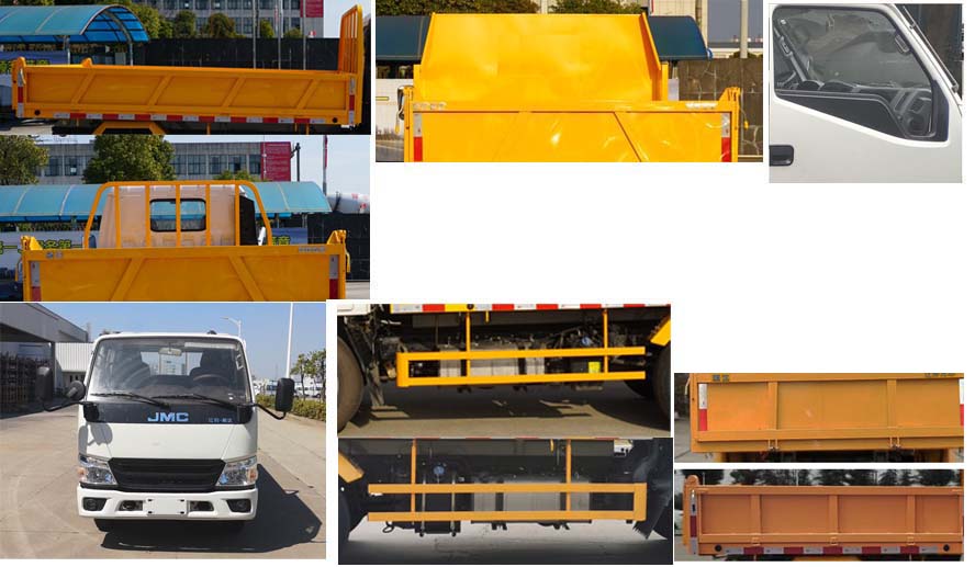 1.倾卸型式为后倾卸式。2.发动机JX493ZLQ6D最大净功率、油耗申报值:88kw、10.5L/100km;发动机JX493ZLQ6F最大净功率、油耗申报值:90kw、10.5L/100km;发动机D20TCIF12最大净功率、油耗申报值:85kw、10.2L/100km。3.ABS系统型号/生产企业:APG3550500A/浙江亚太机电股份有限公司;ABS系统型号/生产企业: 3550B500/浙江亚太机电股份有限公司。4.选装前脸、外后视镜、门框黑色贴膜、前雾灯、前保险杠、进气格栅、货箱龙门架样式、货箱栏板样式、油箱安装位置。5.选装直接供电式ETC装置。6.侧面防护装置材料:Q235,连接方式:螺栓连接;后下部防护装置材料:Q235,连接方式:螺栓连接,断面尺寸:100mm×45mm,离地高度:450/440/420mm。7.尾部仅使用一级反光标识粘贴。货厢重量:512kg,498kg,货厢侧板材质/厚度:钢Q235:1.2mm,货厢底板材质/厚度mm:钢Q235:2.5mm。选装栏板货厢外观样式。整备质量含备胎及灭火器、随车工具、三角垫木 |