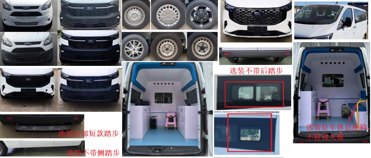1.车辆装有办公桌、电脑及打印机等办公专用设备,用于移动办公等流动服务作业;2.随原车选装前格栅,前保,轮辋,侧拉窗,前大灯,顶高;可选装不带侧踏步,后踏步;3.选装长款后踏步时车长5509mm,对应后悬1195mm,离去角20°;选装短款后踏步时车长5475mm,对应后悬1161mm,离去角22°;不带后踏步时车长5341mm,对应后悬1027mm,离去角24°;选装侧踏步时车宽2040mm;选装不带侧踏步时车宽1986mm;4.ABS系统控制器型号:ESP9或3550A500,生产厂:博世汽车部件(苏州)有限公司或浙江亚太机电股份有限公司;发动机最大净功率:104kW;该车型可选装直接供电式ETC车载装置;该车前悬架型式为麦弗逊式独立悬架;该车配备汽车事件数据记录系统(EDR). |