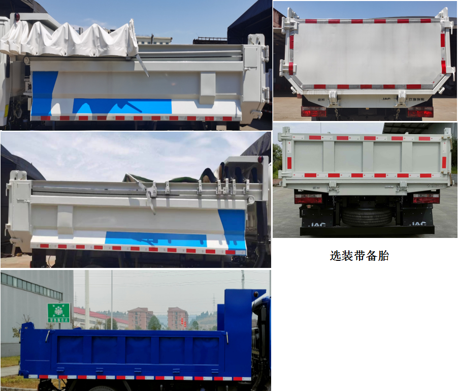自卸方式为后卸;发动机D25Pro对应的油耗申报值(L/100km)为19.5;ABS控制器型号/厂家:VIE ABS-Ⅱ/浙江万安科技股份有限公司;侧面及后下部防护装置材料为Q235A,连接方式为螺栓连接,后部防护装置断面尺寸(高×宽):120mm×60mm,离地高度为400mm;该车型可选装直接式ETC车载装置;选装货箱外观样式;选装备胎; |