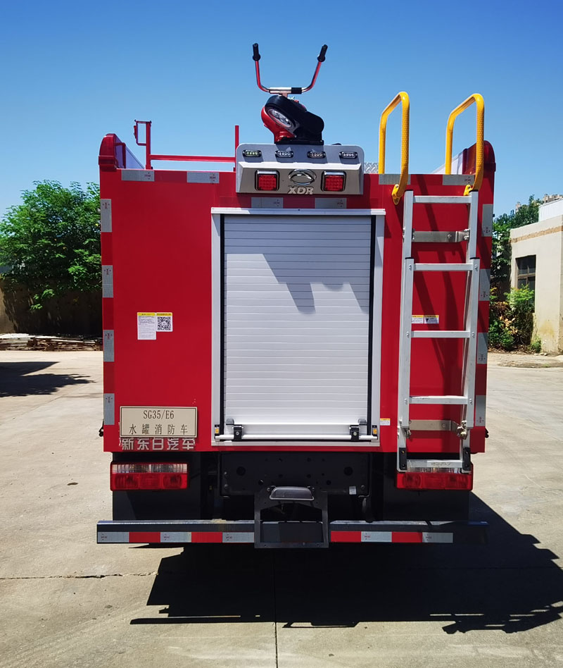 新东日牌东风双排3.5方水罐消防车这款消防车作为水罐消防车中的代表车型,拥有良好的消防性能,车身选用消防车一贯的红色,惹眼方便识别,加上车辆的平台设计,更显独具一格,实现了车辆自身的独特性。
