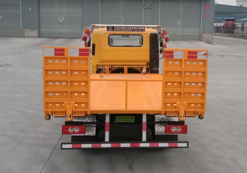 托举质量700kg.侧防护材质Q235-A,连接方式:焊接与螺栓连接,后防护材质Q235-A,宽×高(mm):50×100;离地高435mm,连接方式:焊接;ABS系统控制器型号/生产企业:ABS-E/威伯科汽车控制系统(中国)有限公司,ABS-VI·E/广州瑞立科密汽车电子股份有限公司;仅用发动机F2.8NS6B131,最大净功率93KW;专用装置:液压绞车、托板、液压油缸. 随底盘选装驾驶室及前围灯具. |