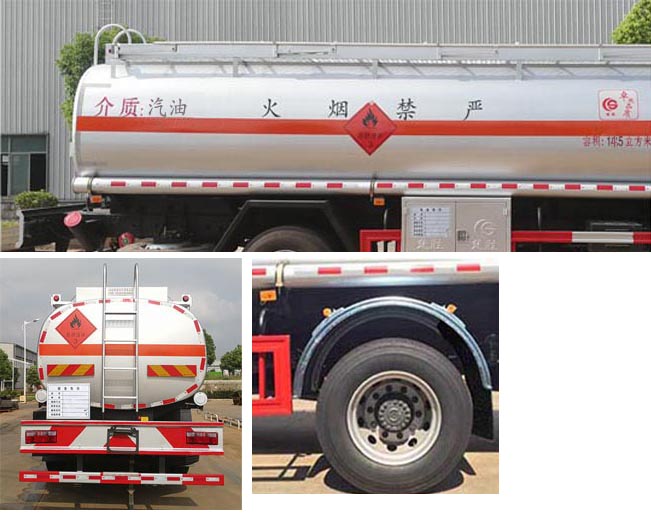 1、该车适用于危险品运输,运送危险货物车辆类型为:FL型,类项号:3。罐体有效容积:14.5立方米,运输介质:汽油,密度:700千克/立方米,罐体外形尺寸(长×宽×高)(mm):5700×2150×1480。2、侧、后防护材料为Q235,螺栓连接。后防护截面尺寸120×60mm,下边缘离地高500mm。罐体上部选装上走道;选装后部尾灯架样式;选装弧形挡泥板。3、仅采用轴距(mm):4700。随底盘选装同系列的高顶驾驶室,选装气喇叭,遮阳罩,绿色滤光带,踏步。仅选用排气管前置、限速装置(限速80km/h)、前轮盘式制动及子午线轮胎的底盘;安装带有卫星定位功能的行驶记录仪;ABS系统生产厂家,型号:焦作博瑞克控制技术有限公司,J ABS。采用的发动机与油耗值(L/100Km)对应关系为: B6.2NS6B230/26.7,D4.5NS6B220/26.6,YCS04200-68/26.4,CY4SK761/26.8。该车后轴为采用空气悬架. |