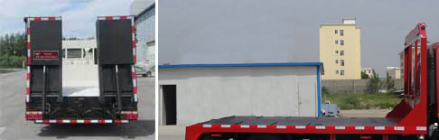 随底盘选装驾驶室,选装不带后爬梯结构,选装带折叠爬梯.该车专用装置为平板,用于运输不可拆卸物体.ABS型号:ABS/ASR-24V-4S/4M,ABS生产企业:襄阳东风隆诚机械有限责任公司.侧、后防护材料均为:Q235;侧、后防护均采用焊接连接;后下部防护装置截面尺寸(mm):120×60,离地面高度460mm.仅采用3308轴距底盘.尾部爬梯收起状态水平长度260mm.仅采用的发动机型号与油耗一一对应:ISF3.8s5141/12.6(L/100km);ISF3.8s5154/12.6(L/100km);YC4S140-50/12.4(L/100km);YC4S150-50/12.4(L/100km);YN38CRE1/12.7(L/100km);CY4SK251/12.5(L/100km);YNF40E1/12.9(L/100km) |