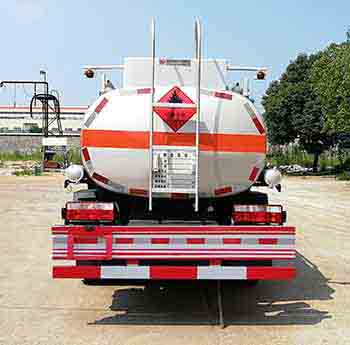 该车为危险品车辆,危险货物运输车辆的类型为FL型,罐体有效容积:5.1立方米,介质:汽油,密度(千克/立方米)为:700;类项号:3;加油机装在车架一侧时,罐体尺寸(长×长轴×短轴)(mm)为:4000×1700×1100,加油机上置时,罐体尺寸(长×长轴×短轴)(mm)为:4000(加油机仓800)×1860×1260;专用装置为罐体和加油机,加油机型号及生产厂家:型号:CS20D1110F,生产厂:正星科技有限公司;侧防护采用Q235材质螺栓连接在大梁上,后防护采用Q235材质焊接连接在大梁上,后防护装置断面尺寸为(mm):100×50,后部防护离地高度:450mm;随底盘选装驾驶室;仅选用排气管前置、限速装置(限速80km/h)、前轮盘式制动及子午线轮胎的底盘;ABS厂家及型号:襄阳东风隆诚机械有限责任公司/ABS/ASR-24V-4S/4M;发动机型号/油耗值(L/100km)分别为:CY4BK461/16.2,CY4BK161/16.2,YCY24140-60/16.2,D20TCIF1/16.2,D25TCIF1/16.2,CA4DB1-11E6/16.2,CA4DB1-13E6/16.2. |