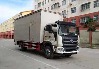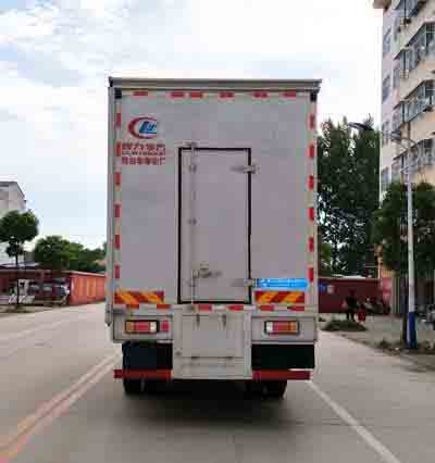程力威牌福田瑞沃排半单桥流动舞台车在外观上遵循现代人的审美观点,简约时尚,外形尺寸为8980,8400,10000×2500×3950,3750(mm),总质量为15795(kg),厢板采用三明治结构,外观平整、防震坚固。舞台板有多种材质供选择。舞台板采用防水、防滑、防火的腹面胶合板,安全耐用。