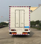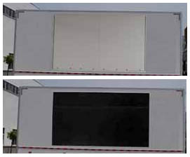 该车是进行舞台文艺表演的专用车辆。可选装LED屏,可选装不同形式后门.车厢顶棚封闭,并采用衍架结构,可升降,车厢两侧板可展开,与顶棚形成整车舞台顶棚;活动舞台板可折叠于车厢内,通过展开装置展后与固定舞台台面形成整车舞台台面;底盘大梁部分设有支撑装置。整车长/轴距/前悬/后悬/高对应关系为(mm):10000/5700/1350/2950/3950,8980/5250/1350/2380/3950,8400/4500/1350/2550/3750。侧防护采用Q235A碳钢,焊接连接,后防护采用Q235A碳钢,焊接连接,后防护截面尺寸120×50mm, 下边缘离地高度500mm。ABS型号为CM4XL-4S/4K(4S/4M),生产厂家为广州科密汽车电子控制技术股份有限公司。选装车厢两侧LED屏幕结构,选装车厢两侧广告灯箱结构,选装侧门结构,选装裙边结构,选装箱体贴画。 |