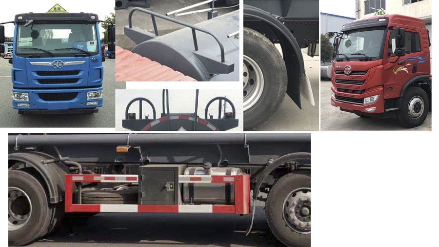 化工液体运输车 ,主要功能用于化工、石油、煤矿、工程行业的各种化工液体的分装、分放、运输等。可独立分仓, 可分装不同的化工液体。根据运输介质不同,可采用碳钢罐,不锈钢罐,钢衬塑复合罐,铝罐等罐体,可装载盐酸,硫酸,液碱,双氧水,甲醛,二甲苯,次氯酸钠,硝酸等化工液体。这款专用车对车辆的安全性能要求较高,一起来看看这款解放龙V小三轴14.45方腐蚀性物品罐式运输车安全是否达标吧: