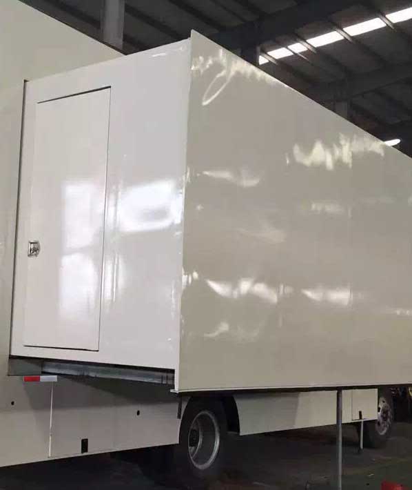 随车配置有舞台灯,舞台板等,设备齐全,搭建舞台安全简单,不得不说它是一款值得购买的流动舞台车。