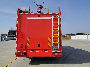 罐体总容积为4.98立方米,水罐容积:4.0立方米,水罐尺寸:1900×1490×1480mm,泡沫液罐容积:0.98立方米,泡沫液罐尺寸:465×1490×1480mm。整体式侧后防护结构,后防护离地高度:490mm。ABS生产企业为威伯科(上海)管理有限公司,型号为4460046300。主要专用装置有消防泵、消防炮。 |