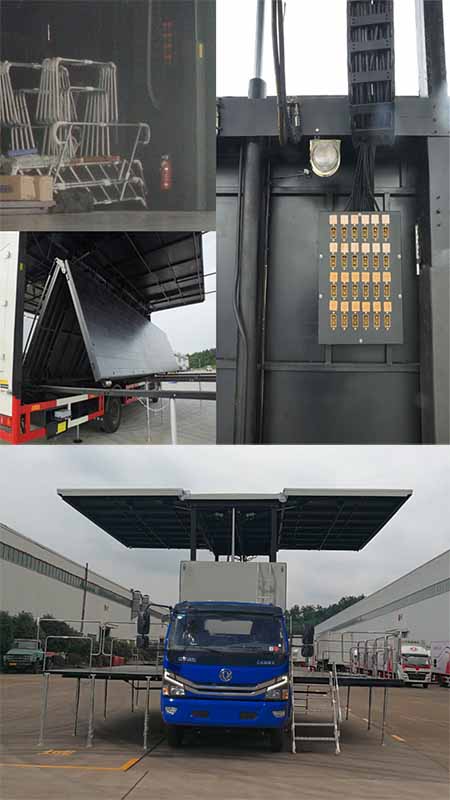 在底盘配置上可以看到它底盘的超强承载力,运输稳定性,在上装的配置上,可以看到其坚实牢固的构造,功能齐全,操作简单,是一款不错的流动舞台车。