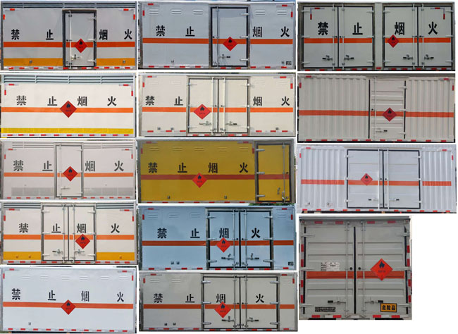 备注 | 厢体顶部封闭,不可开启;厢体选装瓦楞板结构,厢体侧面选装开门型式及位置或不带侧开门,选装百叶窗;该车用于运输具有独立容器(瓶)包装的易燃气体:液化石油气,原油气,压缩天然气,乙炔,甲烷,乙烷,丙烷,丁烷,丙烯,丁烯,二甲醚,打火机或打火机加油器(装有易燃气体),压缩氢,类项号:2.1;运输具有独立容器(瓶)包装的非易燃无毒气体:液化气体(非易燃,充有氮,二氧化碳或空气),压缩氧(氮,空气,氦,氩,氖),二氧化碳,类项号2.2;该车为危险品货物运输车;仅采用前轮盘式制动器,前置排气管,子午线轮胎,限速装置的底盘,限速80km/h;发动机/油耗申报值(L/100km)对应关系为:JX4D30B6H/11.0,JX4D30A6H/11.1;该车安装具有卫星定位功能的行驶记录仪;ABS系统型号:APG3550500A,ABS系统生产厂家:浙江亚太机电股份有限公司;侧面防护及后下部防护装置材料材质:Q235,连接方式:焊接加螺栓连接;后下部防护装置断面尺寸(宽×高):50×100(mm),离地高度:400mm. |