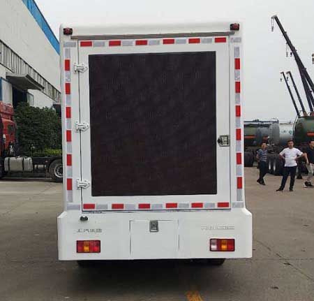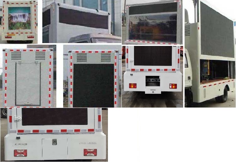 1.该车是用于广告宣传的专用车辆,专用装置为LED显示屏.后部以及侧面防护为裙板结构,后部裙板离地高为410mm,侧面裙板离地高度为360mm;2.ABS系统控制器型号/生产企业:APG3550500A6/浙江亚太机电股份有限公司,YF8/武汉元丰汽车电控系统有限公司;3.车厢顶部封闭,不可开启;4.可选装无导流罩,两侧均可选装LED屏或侧展、LED升降或者不带升降屏, 滚轴灯箱,条屏,活动舞台;5.D19TCIE3最大净功率为80KW,D19TCIE1最大净功率为70KW;6.选装后尾灯;7.后部可选装LED屏或灯箱或后展,通风口;8.前部选装LED条屏;9.选装尾部踏板. |