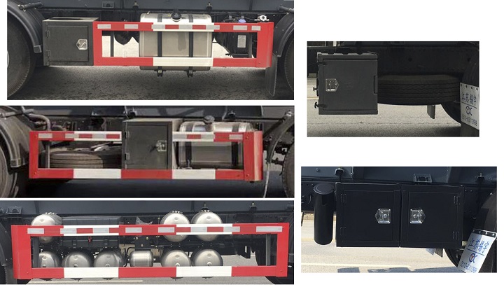 仅选用具有限速装置,限速80km/h、前轮盘式制动、排气管前置及子午线轮胎的底盘,ABS型号为3631010-C2000,生产厂家为东科克诺尔商用车制动系统(十堰)有限公司;危险货物运输车辆的车辆类型:AT型车辆;类项号:8;罐体有效容积为15.5立方米,罐体外形尺寸(mm) (长度×直径) 为7200x1735,对应轴距4500+1350mm,对应总长9850mm,对应后悬2750mm,对应整备质量9105千克,对应载质量16200(3人),16265(2人)千克;罐体外形尺寸(mm) (长度×直径) 为7200x1735,对应轴距5100+1350mm,对应总长9850mm,对应后悬2150mm,对应整备质量9105千克,对应载质量16200(3人),16265(2人)千克;罐体外形尺寸(mm) (长度×直径) 为6350x1830,对应轴距4100+1350mm,对应总长9100mm,对应后悬2400mm,对应整备质量8805千克,对应载质量16500(3人),16565(2人)千克;罐体材质为PP,FRP;该车选装顶部围栏形式;该车安装具有卫星定位功能的行驶记录仪.发动机ISB220 50与ISD245 50分别对应的油耗值(L/100km)为39.0,39.3. 侧、后防护的材质:Q235A;侧防护连接方式:螺栓连接,后防护连接方式:螺栓连接;后防护断面尺寸(mm):120×80,离地高度(mm):500.该车后轴为采用空气悬架.选装侧防护的工具箱位置,选装侧防护那带备胎,选装车辆后端侧面带工具箱;随底盘选装气室布置 |