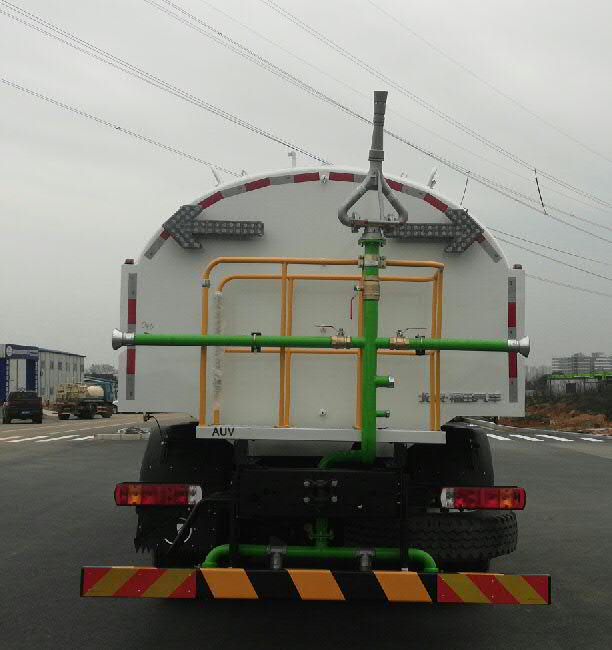 罐体有效容积12.2立方米,罐体外形尺寸(长轴×短轴×长度)(mm):2300×1425×5300和2300×1570×4800,介质名称:水,介质密度:1000千克/立方米.车辆选装基本状态时时整车长10190mm;车辆选装前清洗喷水架时整车长11365mm,前伸为1175mm;选装护栏清洗装置时整车长11125mm,前伸为935mm侧防护和后防护材料均为Q235A,与车辆的连接方式为螺栓连接;后防护的断面尺寸:150×50mm,后防护离地高度:490mm.安装具有卫星定位功能的行驶记录仪.ABS控制器型号/生产企业:44600XXXX0/威伯科汽车控制系统(中国)有限公司,3550X-1010/东科克诺尔商用车制动系(十堰)有限公司. |