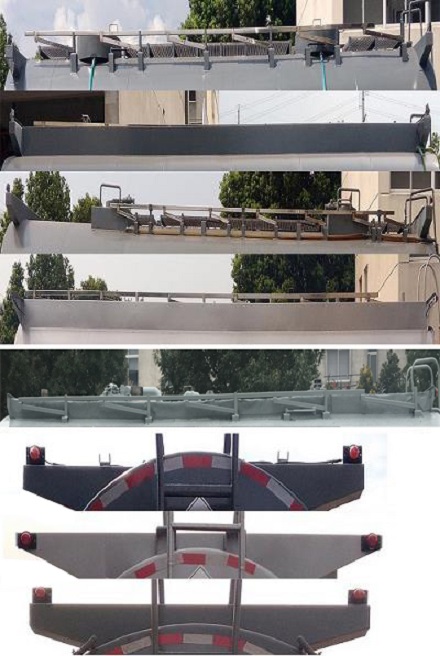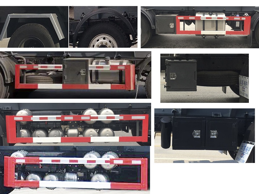 仅选用具有限速装置,前盘制动,排气管前置,后轴空悬结构及子午线轮胎型号的底盘,ABS生产厂家:东科克诺尔商用车制动系统(十堰)有限公司;型号:3631010-C2000;罐体有效容积为14.7立方米,罐体外形尺寸(mm) (长度×直径) 为7100x1735,罐体材质为PP,FRP;危险货物运输车辆的车辆类型;AT型车辆,类项号:8,仅选用轴距1800+4100;该车可选装顶部围栏形式及轮罩;该车安装带卫星定位功能的行驶记录仪;发动机油耗对应关系(L/100km):33.7(ISD210 50),33.6(ISD245 50),33.6(ISD270 50),33.7(ISB210 50),33.5(ISD285 50).侧、后防护的材质:Q235A;侧防护连接方式:螺栓连接,后防护连接方式:螺栓连接;后防护断面尺寸(mm):120×80,离地高度(mm):500. 该车后轴为采用空气悬架.选装侧防护的工具箱位置,选装侧防护那带备胎,选装车辆后端侧面带工具箱;随底盘选装气室布置. |
