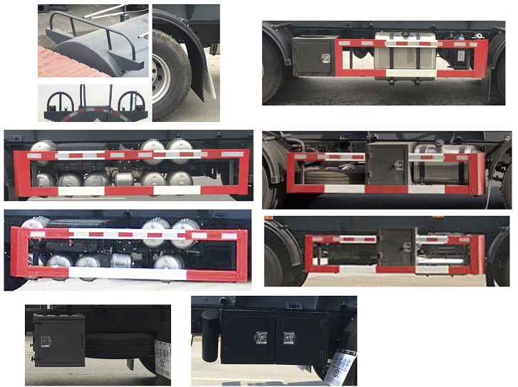 该车由载货汽车底盘EQ1320GLVJ二类汽车底盘改装而成,整车尺寸为:11100×2500×3500(mm),轴距1850+2700+1350,1850+3200+1350,1850+3800+1350,1850+4000+1350,1850+4350+1350,1850+4650+1350(mm),有着超强承载力,选用11.00R20 18PR,12R22.5 18PR,295/80R22.5 18PR的轮胎,爬坡也不在话下。
