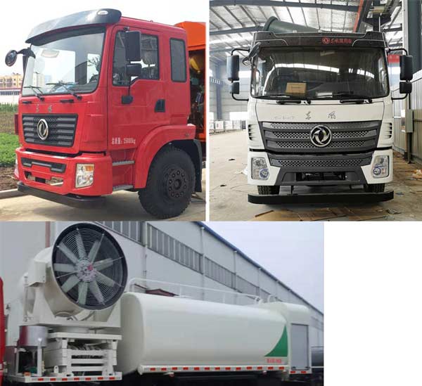程力威牌东风锦程V5后双桥13.44方多功能抑尘车的底盘型号为EQ1258GSZ5DJ,底盘轴距为4350+1300,4750+1300,5900+1300,4900+1300,5350+1300,4350+1350,4750+1350,5900+1350,4900+1350,5350+1350(mm),轮胎规格为295/80R22.5 18PR,11.00-20 18PR,11.00R20 18PR,使用ISD210 50 YC6JA240-50 ISB210 50 YC6A240-50 YC6A270-50 WP7.270E51 ISD245 50型号的发动机,排放符合国家环保要求,排放依据标准为GB17691-2005国Ⅴ,GB3847-2005,底盘运输可靠稳定。