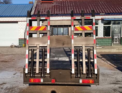 吉平雄风牌JXF5169TPBE5型平板运输车在外观上稳重大气,整车外形尺寸为9000×2550×2950,3200(mm),罐体采用优质碳钢板材一次卷压成型的制造工艺,电脑专控自动成型封头,内外满焊对接,完全做到无缝成型。罐体可分仓,仓内可分室,中间隔板下端有通孔,每仓中间焊有分仓加强波隔板,以减轻车辆行驶时罐体内油料的冲击和提高罐体的刚度。整车还配有油气回收阀,防溢流探杆,流量计,呼吸阀,海底阀灭火器等等安全部件,有效保障运油的安全。