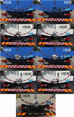 1.该车仅选用底盘轴距4500mm;有效容积:11.39立方米,罐体外形尺寸(mm)(长轴×短轴×直线段长度):2126×1346×5400(直线段),罐体总长5630mm;2.该车配置的放粪阀有A,B,C,D,E五种形式,配置A,E型放粪阀时整车长度为8210mm,后悬为2440mm;配置B,D型放粪阀时整车长度为8485mm, 后悬为2715mm;配置C型放粪阀时整车长度为8645mm, 后悬为2875mm;该车配置A,B,C,D型阀时离去角为12°,配置E型阀时离去角为10°;3.该车可配置摇臂装置,吸液头,集便抽吸装置,卷盘四种抽吸装置;其中配置摇臂装置,吸液头抽吸装置,集便抽吸装置时整车高度为2930mm,配置卷盘抽吸装置时整车高度为3020mm;该车配置卷盘抽吸装置时可选装一款球阀;4.ABS系统型号/生产企业对应关系:ABS-E/威伯科汽车控制系统(中国)有限公司;ABS/ASR-24V-4S/4M/东科克诺尔商用车制动系统(十堰)有限公司;CM4XL-4S/4M/广州瑞立科密汽车电子股份有限公司;3550D-1010/东科克诺尔商用车制动系统(十堰)有限公司;5.侧防材料:铝合金,螺栓连接;后防材料:Q235-B,连接方式:螺栓连接,后防截面尺寸:160×50(mm),离地高度:405 mm;该车具有罐体及真空抽吸系统,主要用于抽吸粪便,污水. |