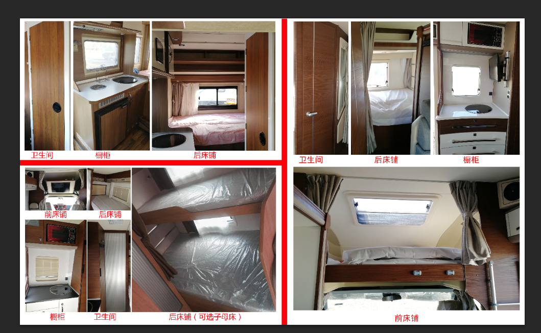 1.安装中等配置时整备质量为4150kg,对应额定载客2-5;安装高配置时整备质量为4218kg,对应额定载客2-4;2.安装不同型号的空调时整车高度为3140mm,3180mm或3240mm;3.左右两侧均可选装遮阳篷,对应整车宽度为2430mm,2500mm或2540mm;4.车顶可选装天窗、卫星天线、太阳能电池;5.车身两侧或后部可选装封闭部分窗户、舱门、外置储物板;可选装其它造型的后围灯具;6.可选装后爬梯,自行车架;7.ABS型号/生产企业:0 265 242 ***/BOSCH;8.发动机最大净功率125kW(F1CFL411F*A);9.该车以裙边结构作为侧、后防护,侧防护下边缘离地高度285mm,后防护下边缘离地高度345mm;10.该车可选装不同形式的右侧外推窗;可选装C型前大顶造型;可选装车外电视支架;可选装不同形式的乘客门;可取消前部标识;11.该车配备卧具、厨具、卫生设施等旅居生活设施和娱乐设施,用于旅行宿营. |