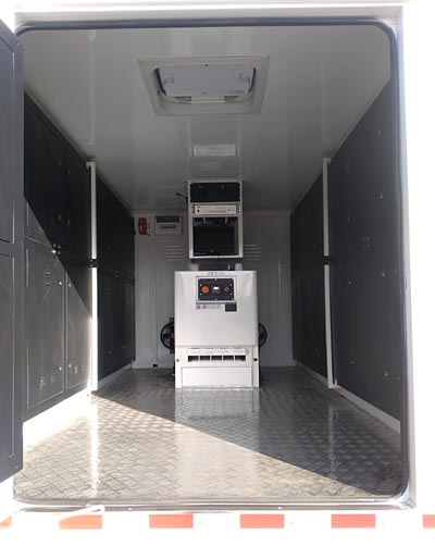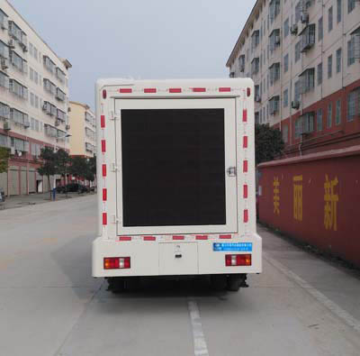 该车是用于广告宣传和科普宣传的专用车辆.两侧均可选装:LED升降或者不带升降屏, 滚轴灯箱,条屏;后部可选装:通风口,后开门;侧面以及后部为裙边结构,侧面下沿离地高度420mm;后部下沿离地高500mm;随底盘选装驾驶室.该车仅采用轴距(mm)3280.ABS系统型号为XH-KQ4S4M-E01,生产企业为广州市西合汽车电子装备有限公司;型号为CM4XL-4S/4M,生产企业为广州瑞立科密汽车电子股份有限公司. |