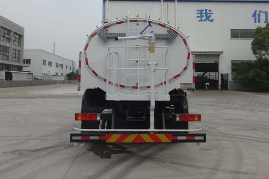 车身喷漆采用白蓝相配,寓意蓝天白云,保卫环境整洁的意思;整车外形尺寸为9190,9290×2530×2995(mm),罐体容量大,车辆额定载质量达到8535,8600(Kg),保证了运输的水容量,改装配置上,加装有60米的耐高压钢丝清洗高压管,方便近距离作业;配上金属喷漆,提高车辆档次,确保罐体无掉漆,延长使用寿命,同时整车造型美观,比例协调。