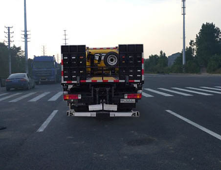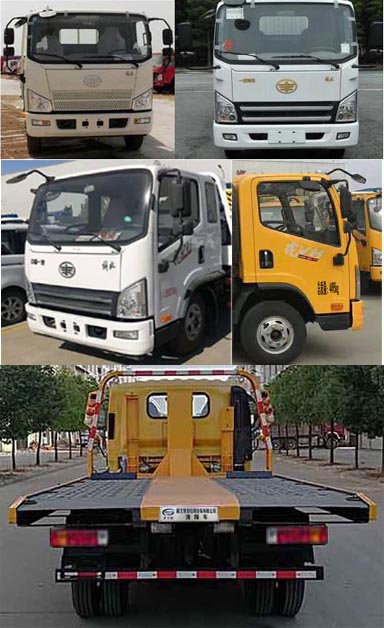 随底盘选装导流罩.选装新结构导流罩.选装排半驾驶室.选装不同侧窗的驾驶室.选装新前脸驾驶室.选装不同的侧门结构.选装新结构的保险杠:选装摆臂平板装置和后平板、无后拖臂、后部伸缩机构:托举质量:500kg;侧防护装置材料:Q235,连接方式:焊接连接;后防护由专用装置替代,后部下边缘离地高度300mm,ABS防抱死制动系统生产厂家/型号:1.广州瑞立科密汽车电子股份有限公司/CM4XL-4S/4M;2.浙江万安科技股份有限公司/VIE ABS-II.该车安装清障装置,用于托移道路故障车辆,城市违章车辆等工作. |