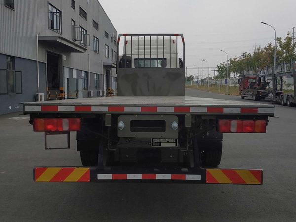 整车的外形尺寸为11200,11400,12000×2550×3180,3620(mm),外观造型简约大气,整车的上户吨位为14890,14825(kg),总质量为25000(kg),上装平板采用板材厚度适中的花纹板,凹凸设计,防滑美观,承载也强。